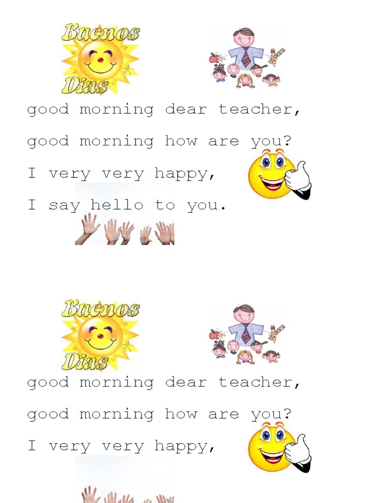 Good morning dear teacher song lyrics. Good morning dear teacher song. Good morning dear sun. Good morning dear Earth good morning dear Sun Good morning dear rocks and the flowers every one.